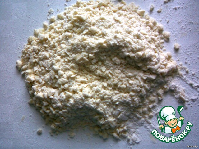 Слиочное вмасло рубим в крошку с 2-мя стаканами муки