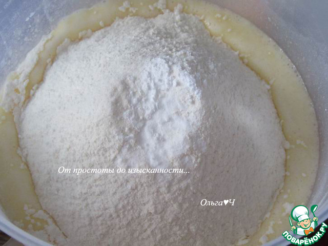 Всыпьте муку, разрыхлитель, соль и ванилин, ещё взбейте.