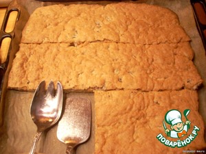 Выпекать до готовности 15-20 минут. В горячем виде разрезать как печенье, или на детали для торта.