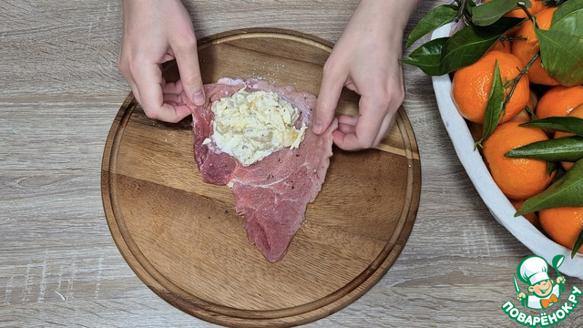 Ингредиенты для «Мясные рулетики с ананасами»: