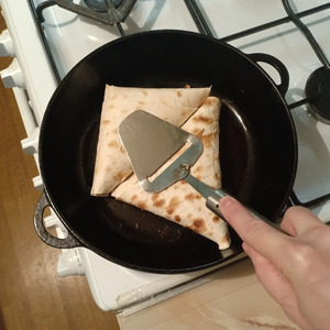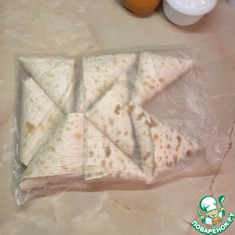 Чтобы в процессе приготовления лаваш не подсыхал, свернутые пирожки можно уложить в мешочек.