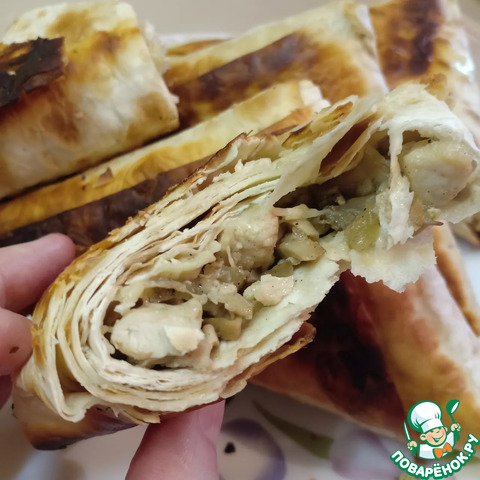 Рецепт «Лавашные пирожки с сыром, грибами, курицей»:
