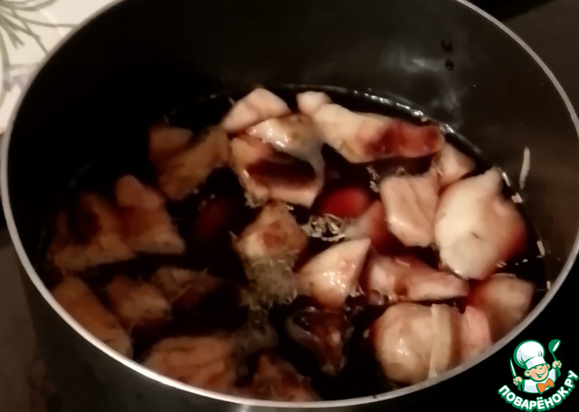 Свекла используется, наверное, потому она хорошо сочетается как с чесноком, луком и розмарином, так и с уткой.. А потом уже появляется фруктовый грушевый соус. .. По второму пункту, вы, наверное, правы. Это известный у нас в Англии метод варки- poaching, Это значит варить, чуть-чуть не доводя до кипения..Есть яйца-пашот, есть рыба-пашот. Гугл мне выдал в качестве перевода полирование. Я уже с этим определением вылезала на сайт относительно рыбы. По шапке; не получила, значит, думаю, нормально.
