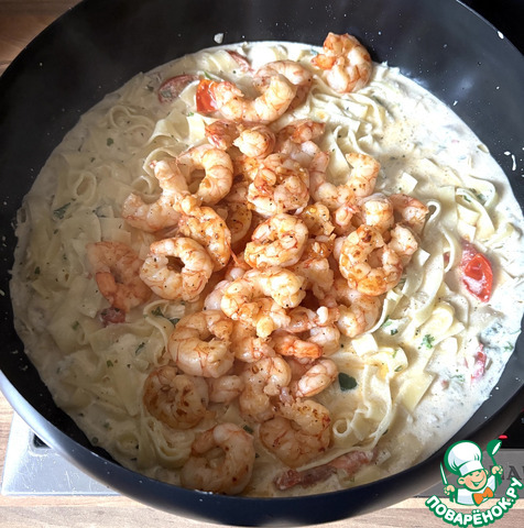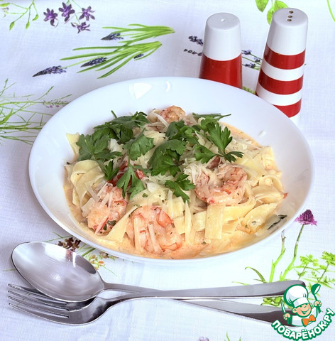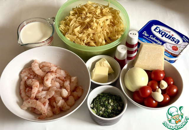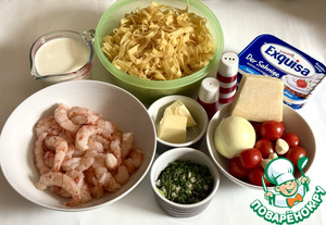 Ингредиенты для «Паста с креветками в сырном соусе»: