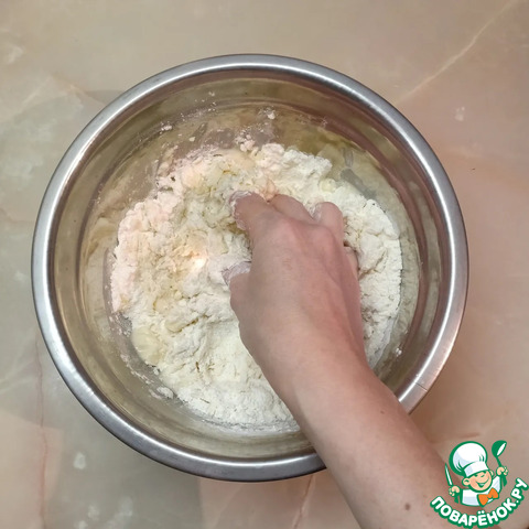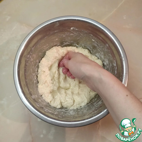 Замешивать тесто 15мин до гладкой, равномерной текстуры. Оно не должно быть липкое и тянущееся.