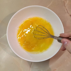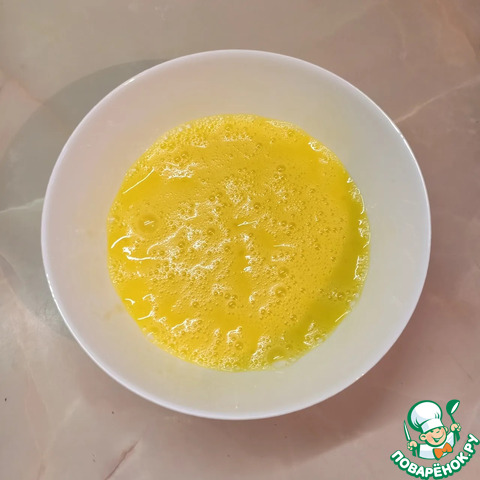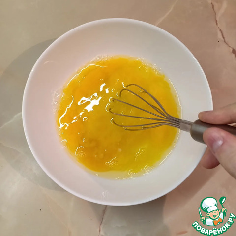 Разбить яйца в глубокую миску и взбить венчиком до однородности.