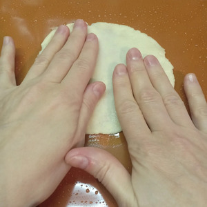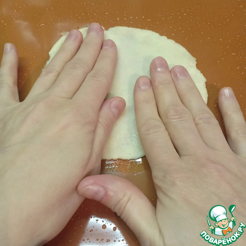 Непосредственно перед самым приготовлением, смазать руки и рабочую поверхность растительным маслом. Шарики выкладывать на смазанную поверхность, осторожно растягивая их пальцами по кругу, чтобы получилась тонкая лепешка. Скалку лучше не использовать, т. к. она примнет тесто, сделав его «деревянным».