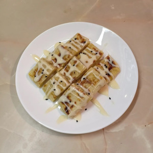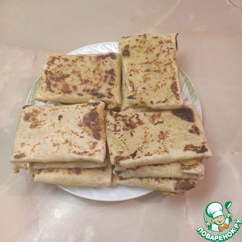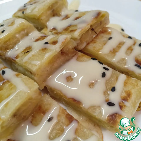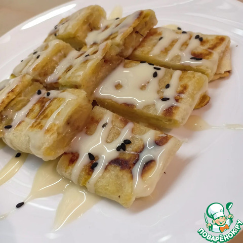 Получаются вот такие блинчики с бананово-яичной начинкой. Маслом я их не смазывала, но это дело вкуса.