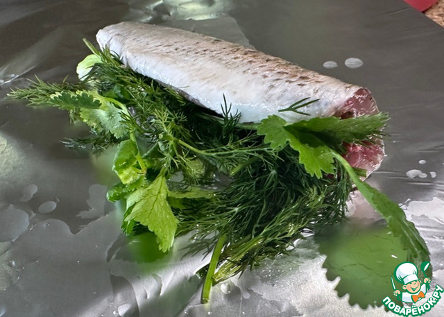 Утром набил зеленкой свежей, завернул в фольгу и в духовку.