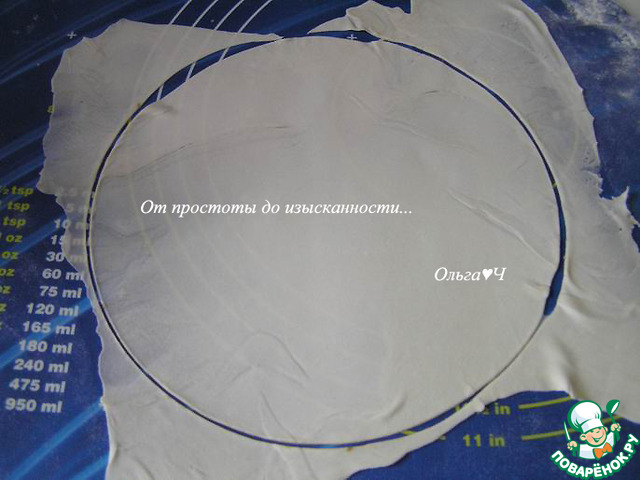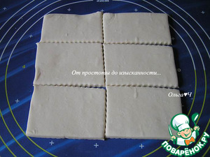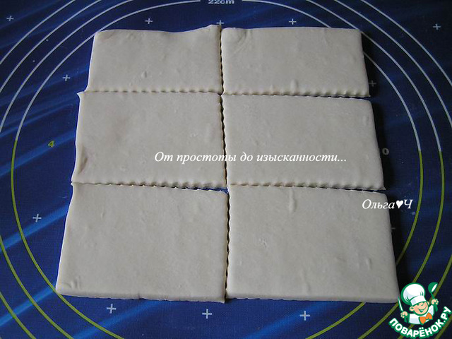 Слоеное тесто разделите на 12 частей (на фото у меня полпорции, вторая за кадром).