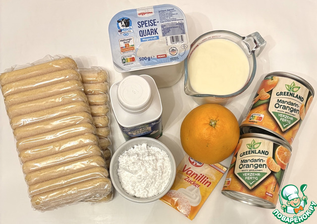 Ингредиенты для «Творожный десерт с мандаринами "тирамису"»: