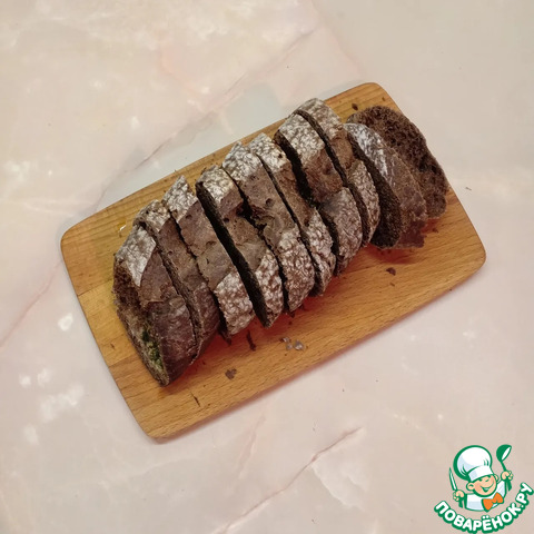 Ржаной багет нарезать на ломтики толщиной 0,8-1см.