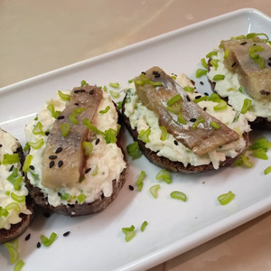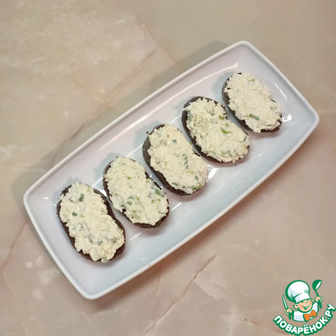 И выложить его поверх начинки по кусочку на каждый бутербродик.