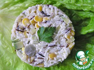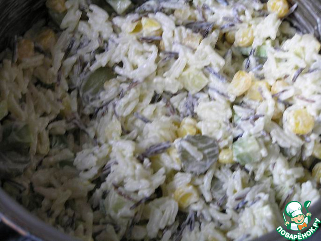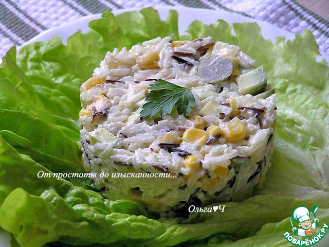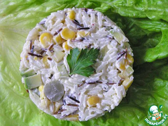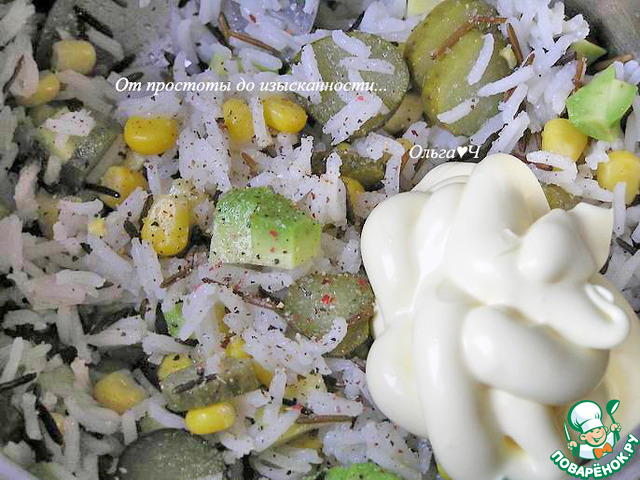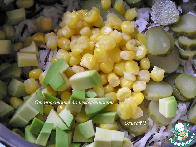 Сытный салат для праздничного постного стола с диким рисом, авокадо, кукурузой и маринованными огурчиками. Этот салат очень хорош как в тёплом так и в холодном виде. Попробуйте!