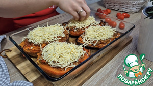 Сверху посыпаем сыром и снова в разогретую до 180°С духовку на 15 минут.