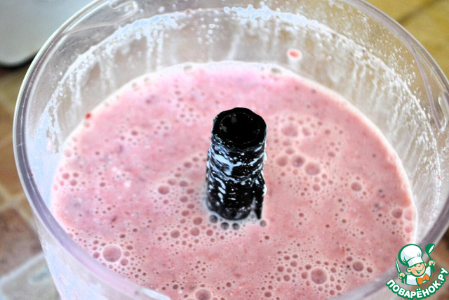 Для подачи нарезать дольками замороженный банан и/или свежую/размороженную клубнику.