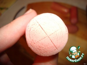 Разрезать сосиски пополам