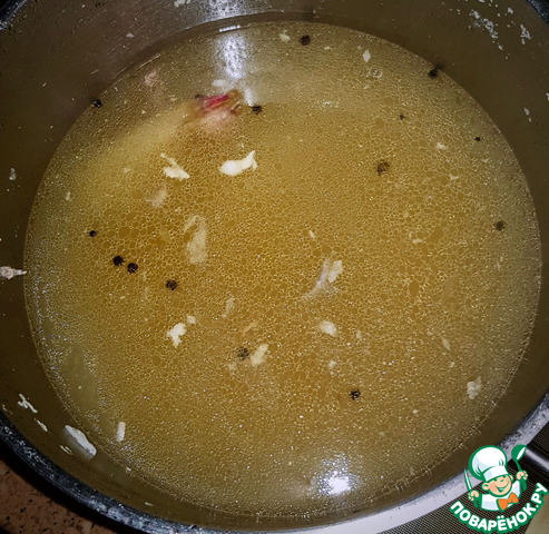 Бульон варился из чешуйкосодержащих элементов, поэтому его следует тщательно процедить. Луше через два сита. И лучше пару раз.