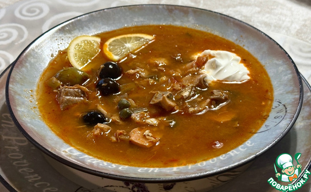 Солянка должна обязательно настояться. Но! Разве выдержишь. Вот прямо свежая, только с огня, что называется.