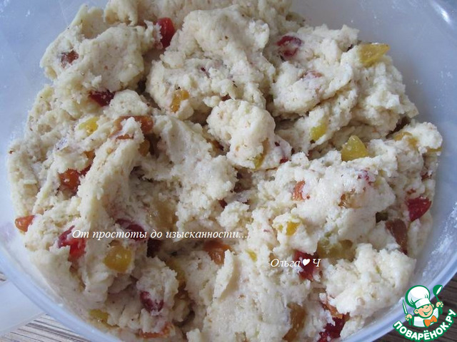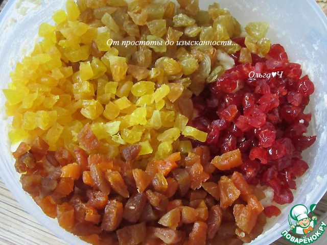 Рецепт «Творожный штоллен с кумкватом, вишней, курагой»: