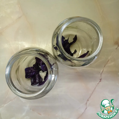 На дно заранее простерилизованной банки положить веточку базилика.