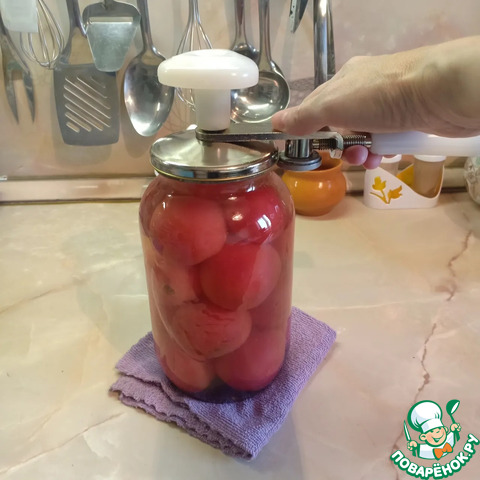 Накрыть банки заранее простерилизованными крышками и закатать.
