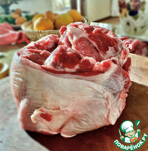 Голяшка (на фото она уже без кости) — мышечная часть передней или задней ноги. В ней оптимальное соотношение мяса, жира и соединительной ткани.