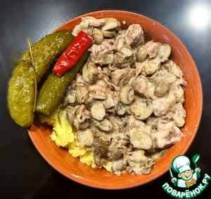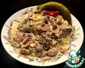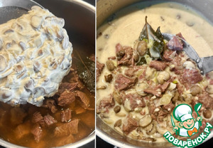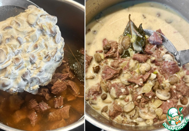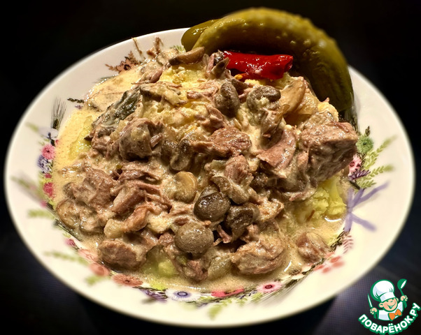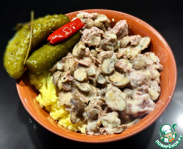 Рецепт «Голяшка говяжья томлёная с грибами в сливках»: