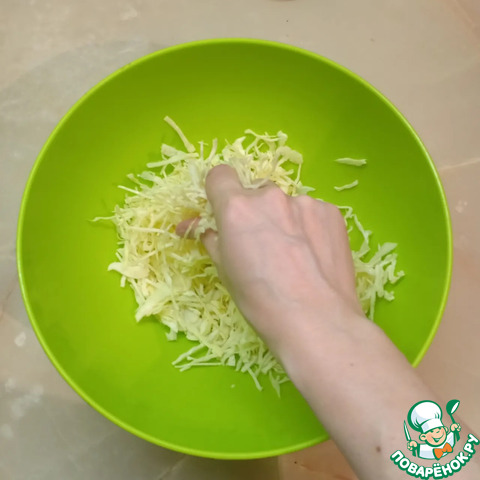 Если вы используете белокочанную капусту, то ее нужно немного помять руками, чтобы она стала мягче.