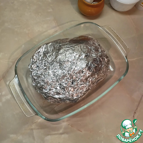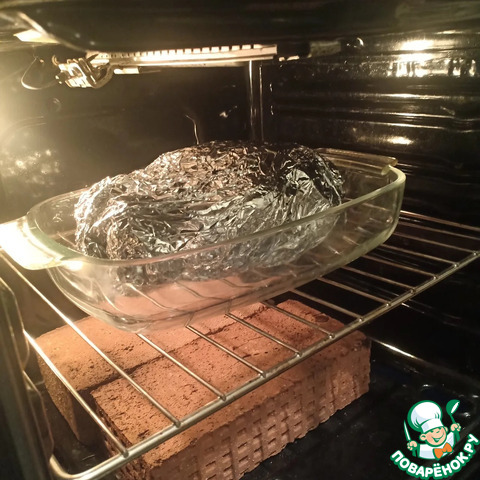 И поместить на противень в духовку. Запекать 30 мин в духовке, заранее разогретой до 250С.