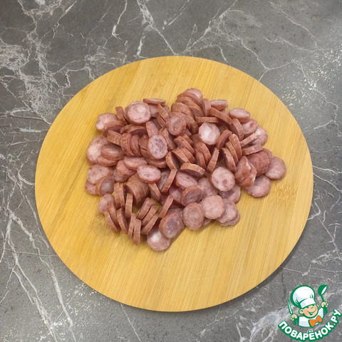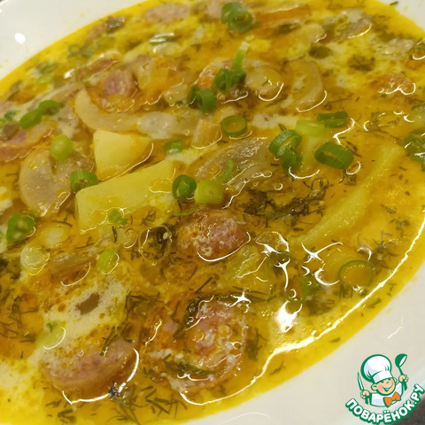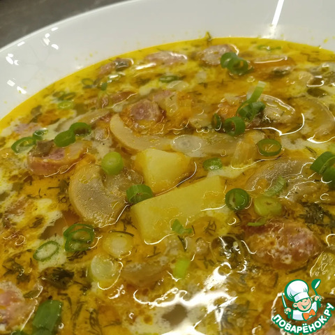 Ингредиенты для «Сырный суп с грибами и колбасками»: