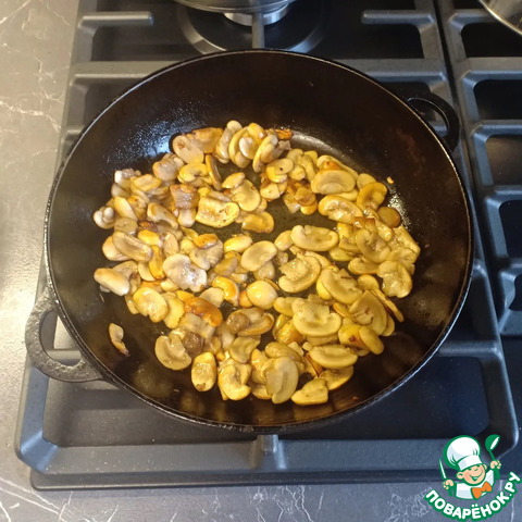 Отдельно обжарить до готовности грибы, поперчив их немного в конце обжаривания.