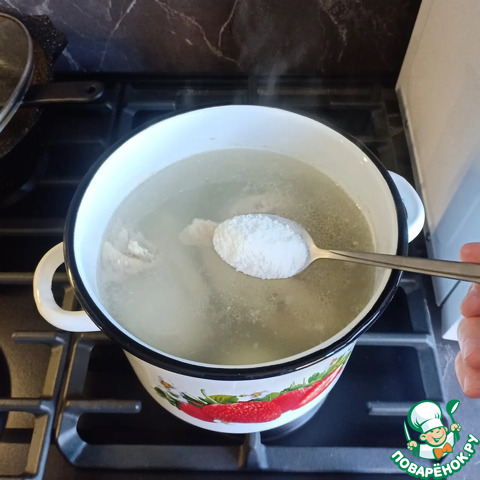 Бульон посолить по своему вкусу.