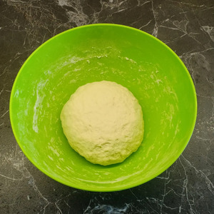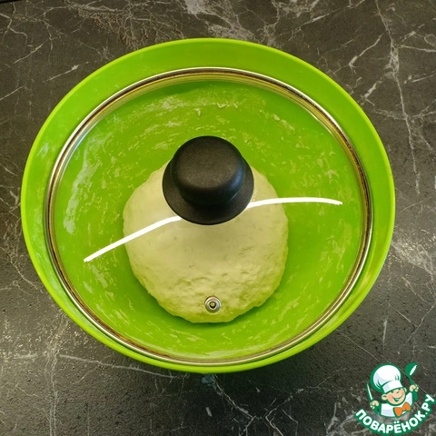 Готовое тесто оставить в миске отдохнуть, накрыв его крышкой.