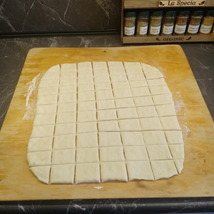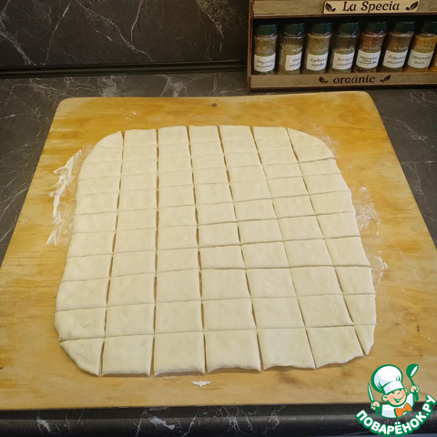 И нарезать его небольшими квадратами или ромбиками.