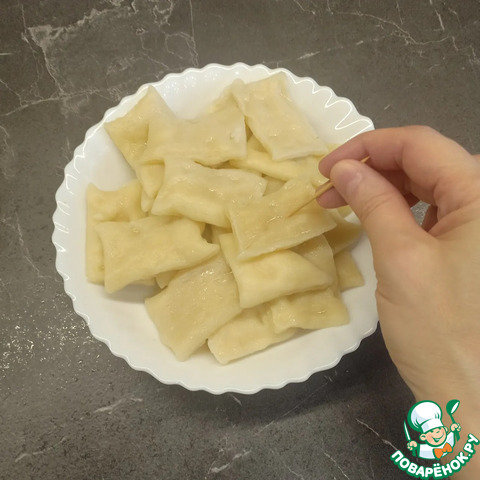 Чтобы готовый хинкал не стал жестким и не потерял пышность, его нужно в нескольких местах проколоть зубочисткой.