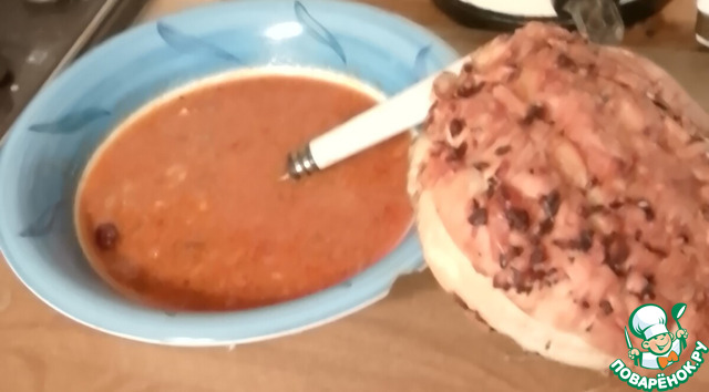 Посыпать орехами. Разогреть хлеб. Можно разложить по блюдам и подавать. Приятного аппетита.