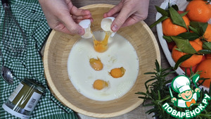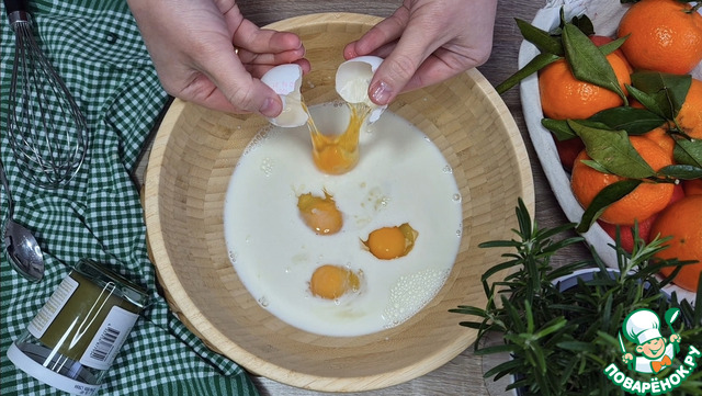 Смешать молоко, сахар, щепотку соли, яйца и ванилин.
