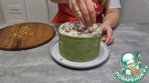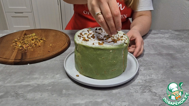 Если вы любительница фисташек, вы будете в восторге от этого блинного торта с фисташковыми блинчиками и фисташковым кремом.