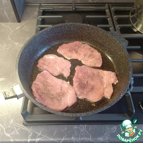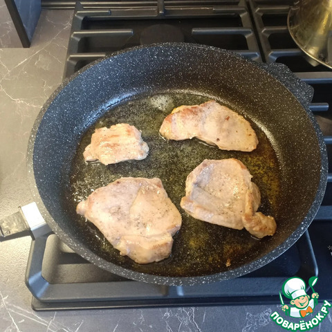 Обжарить мясо на сковороде с каждой стороны по 1-3мин до образования красивой румяной корочки.