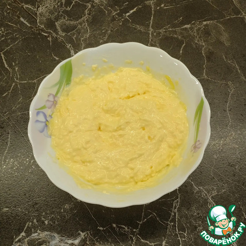 Затем этой сырной смесью смазать верхушки получившихся стожков.