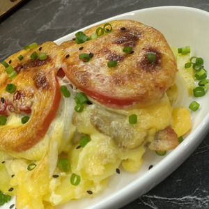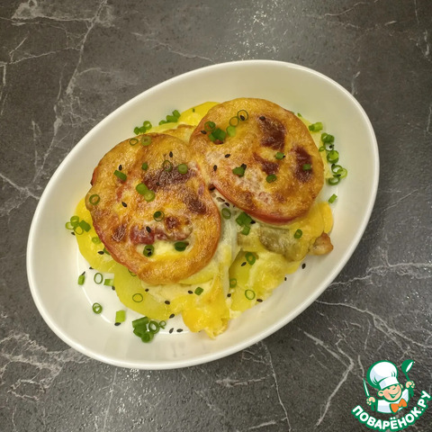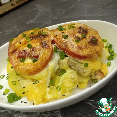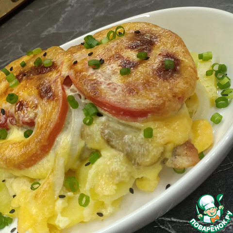 Мясо с помидорами и грибами
