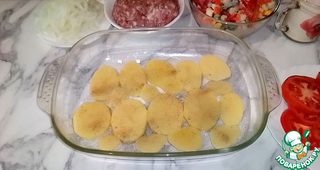 Ингредиенты для «Картофельная запеканка с фаршем и овощами»: