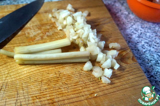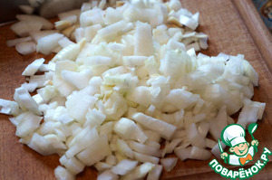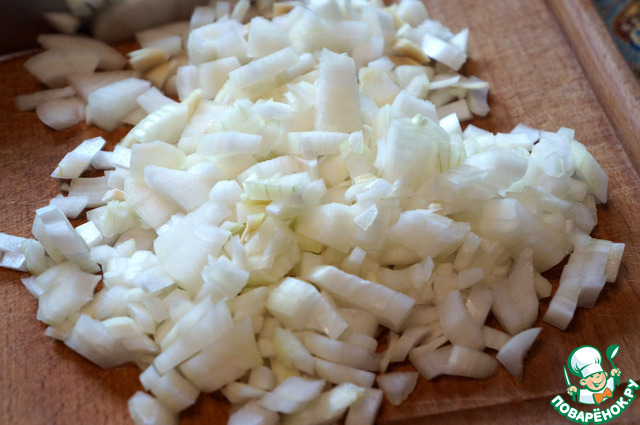 Пока варится бульон, подготовить остальные ингредиенты. Лук порезать кубиком.