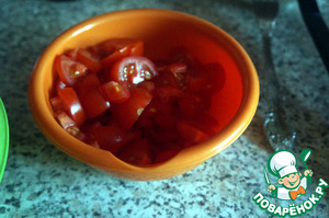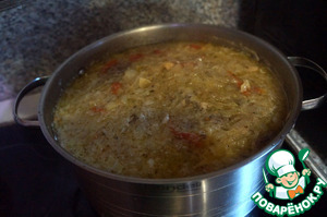 Бульон довести до кипения, отправить в бульон все овощи, кроме помидоров. Убавить огонь до среднего, варить 10 минут. Добавить помидоры, варить еще 10 минут.