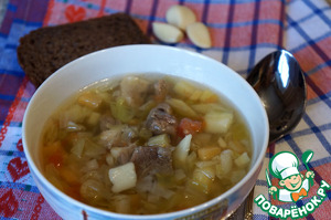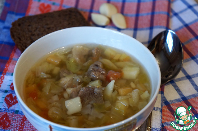 Эти щи я сделал максимально сложными – и максимально вкусными. Баранина, говядина и свинина обменялись вкусами, в итоге обогатив суп. Два вида капусты его тоже, мягко говоря, не обеднили. Ну и остальные ингредиенты добавили смака. Стебель сельдерея я использую часто, но понемногу. А продают его упаковками. Куда девать неиспользованное? Мариновать! Что я и делаю регулярно. Маринованный сельдерей хорошо идет в борщ, в щи, годится к тушеному мясу.