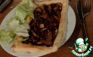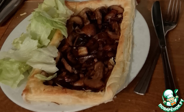 Изделия из теста составляют основу португальской кухни. Предлагается грибной тарт из слоёного теста, который, несомненно, вас порадует, и, может быть, напомнит о солнечной Португалии. Единственное его отличие от других открытых пирогов с грибами - это то, что грибная "карамель" предшествует слою грибов и т. д.
