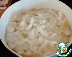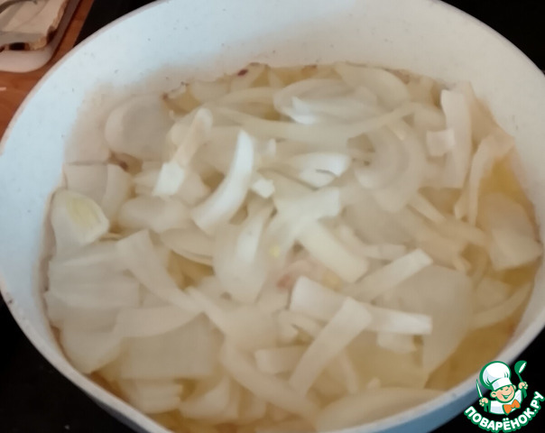 Сделаем карамель. В сковороде разогреть 1 столовую ложку оливкового масла, добавить лук, и на огне чуть ниже среднего готовить его 10-12 минут до карамелизации. Добавить соевый соус. Перемешать. Убрать с огня.