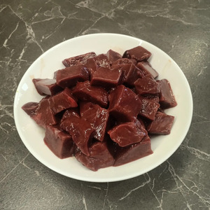 Печень тщательно промыть, удалить жировые прослойки, протоки и нарезать ее средними кусочками.
