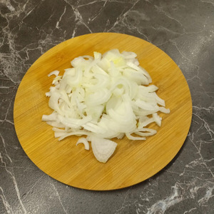 Лук очистить и нарезать полукольцами.